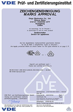 微動(dòng)開(kāi)關(guān)VDE證書(shū)