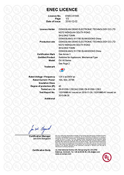 一般型微動(dòng)開(kāi)關(guān)ENEC證書(shū)